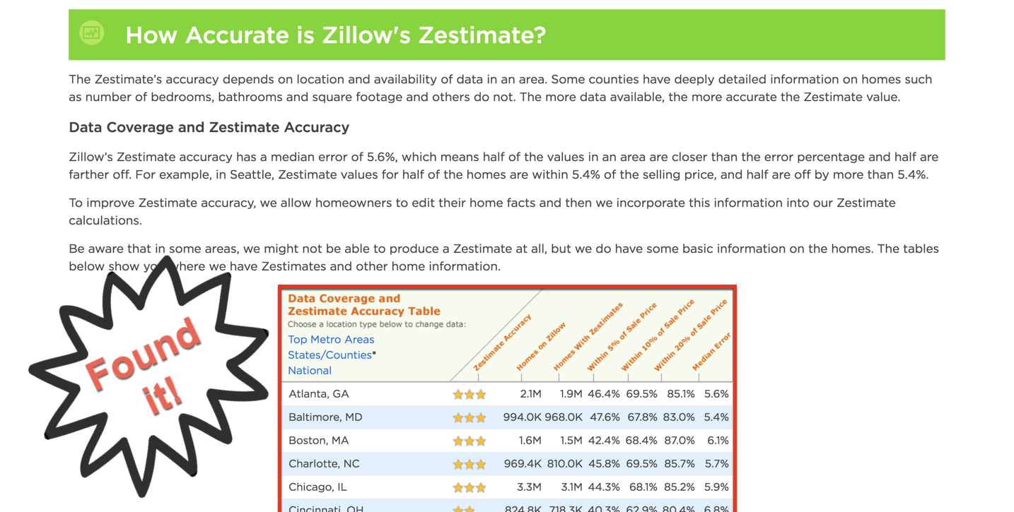 Knowing the average inaccuracy of the Zestimates in your area can greatly impact your decision on whether or not to trust that number. People have become so accustomed to trusting online home valuations because they don't know where else to go.